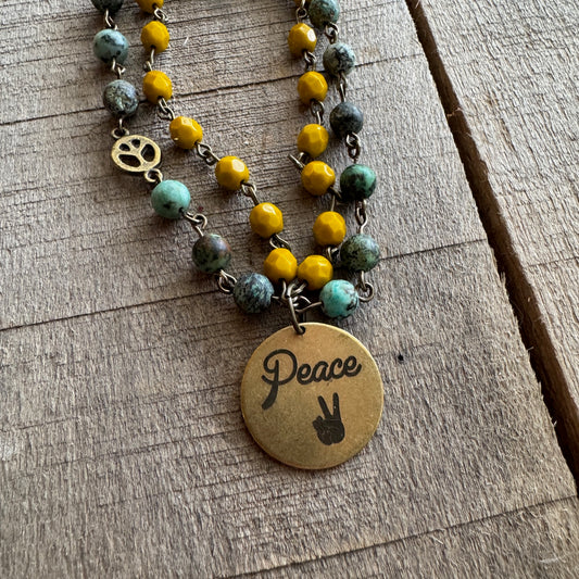 Boho Beaded Peace Hand Bracelet - Vintage Style Multi-Strand Bracelet with Charm