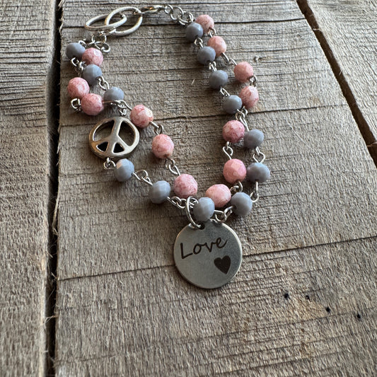 Boho Beaded Love Bracelet - Vintage Silver Multi-Strand Bracelet with Charm