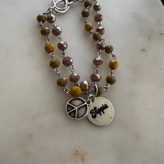 Boho Beaded Hippie Peace Bracelet - Vintage Silver Multi-Strand Bracelet with Charm