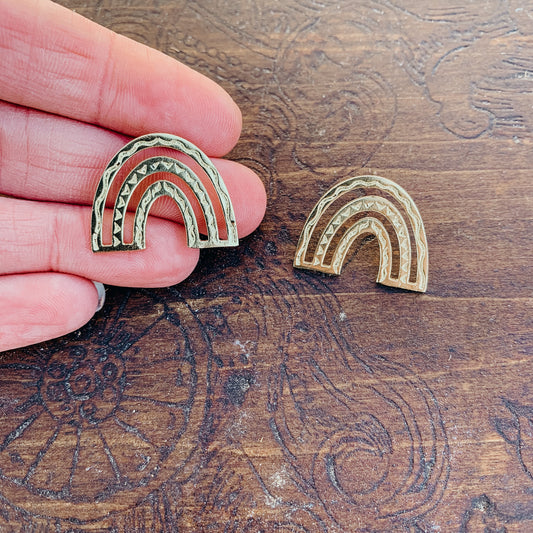 Boho Rainbow Brass Stud Earrings, Minimalist - Metal Collection