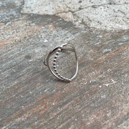 Bohemian Sterling Silver Beaded Moon Ring - Open Oval Ring