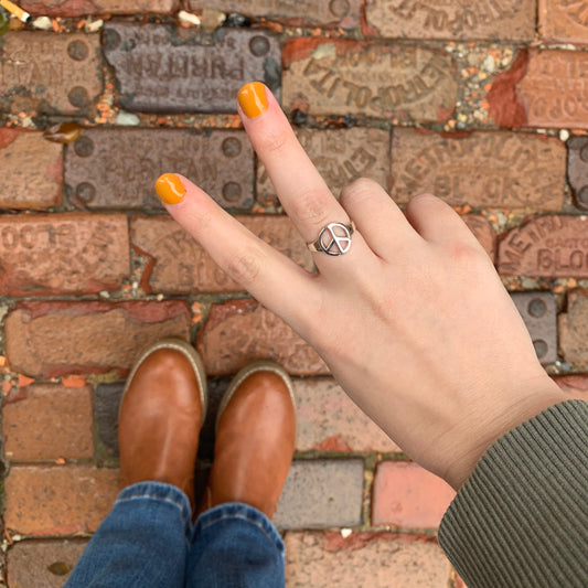 Boho Hippie Sterling Silver Peace Sign Ring – Vintage-Inspired Statement Jewelry for Free-Spirited Souls
