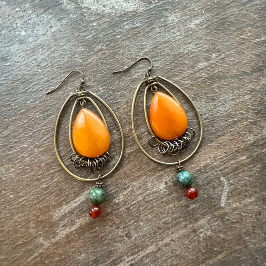 Mustard Bead Oval Hoop Earrings