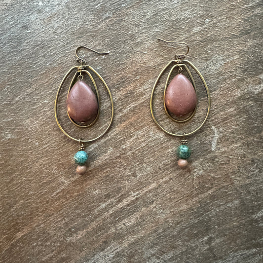 Maroon Bead Oval Hoop Earrings