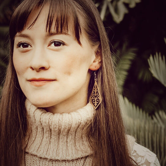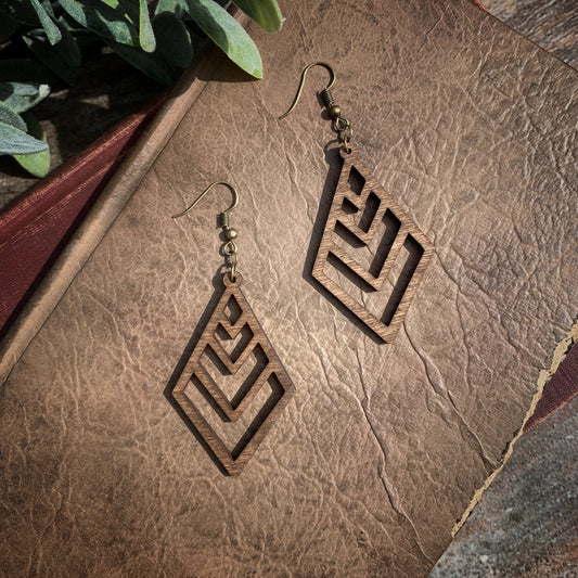 Long Diamond Birchwood Earrings, Natural laser cut wood earrings, Boho Style