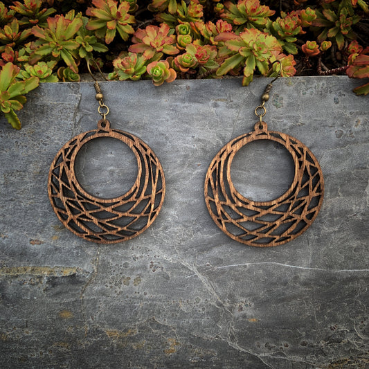 Laser Cut Geometric Earrings Lightweight Wood Boho Hoop Circle Earrings