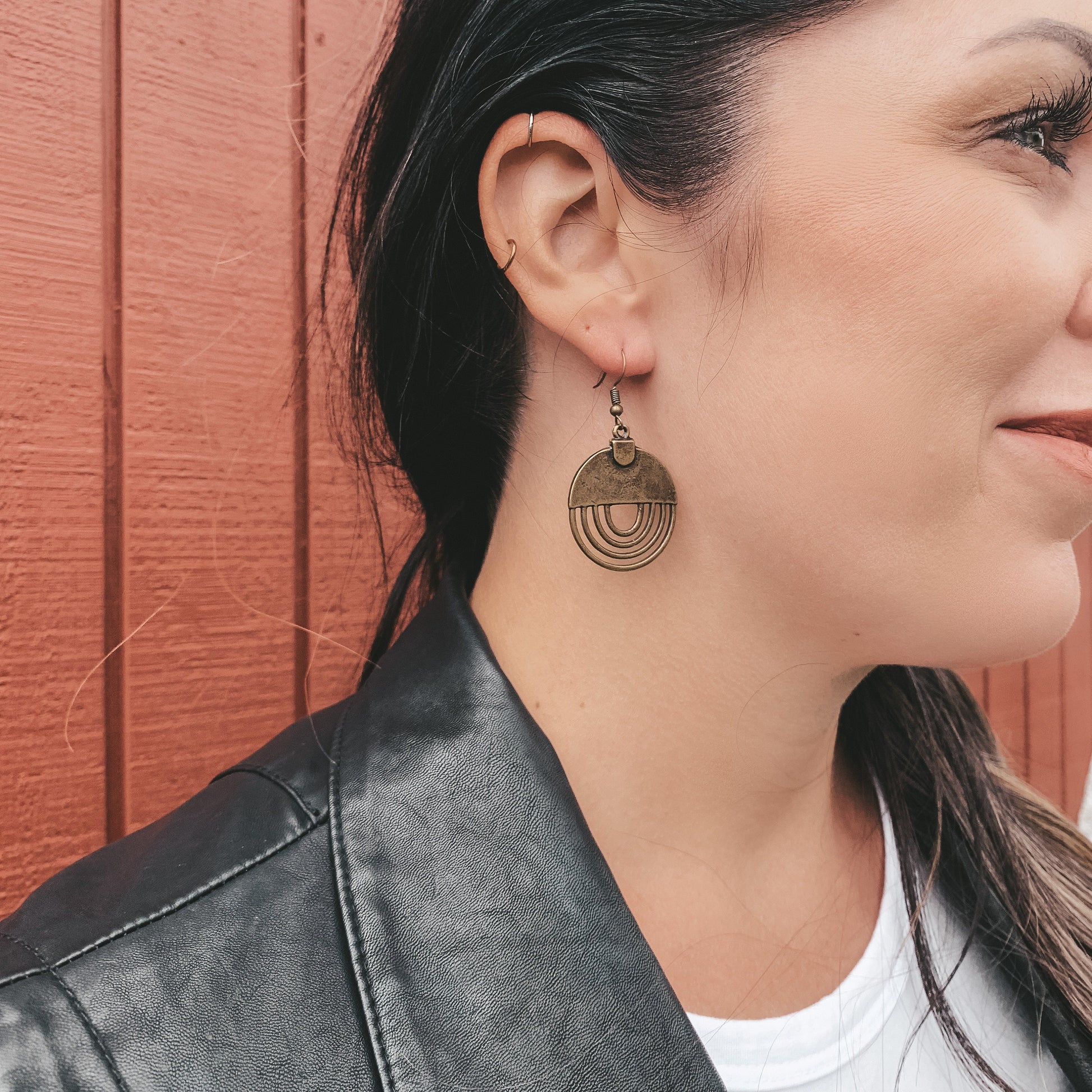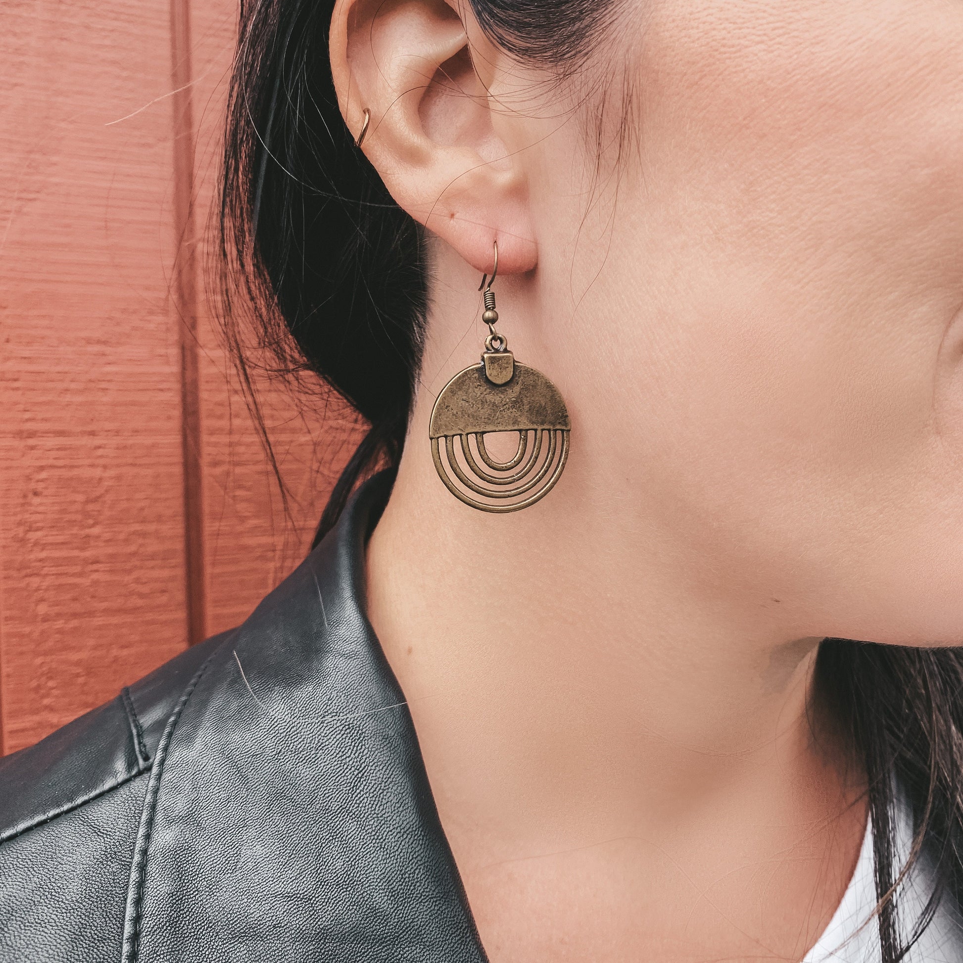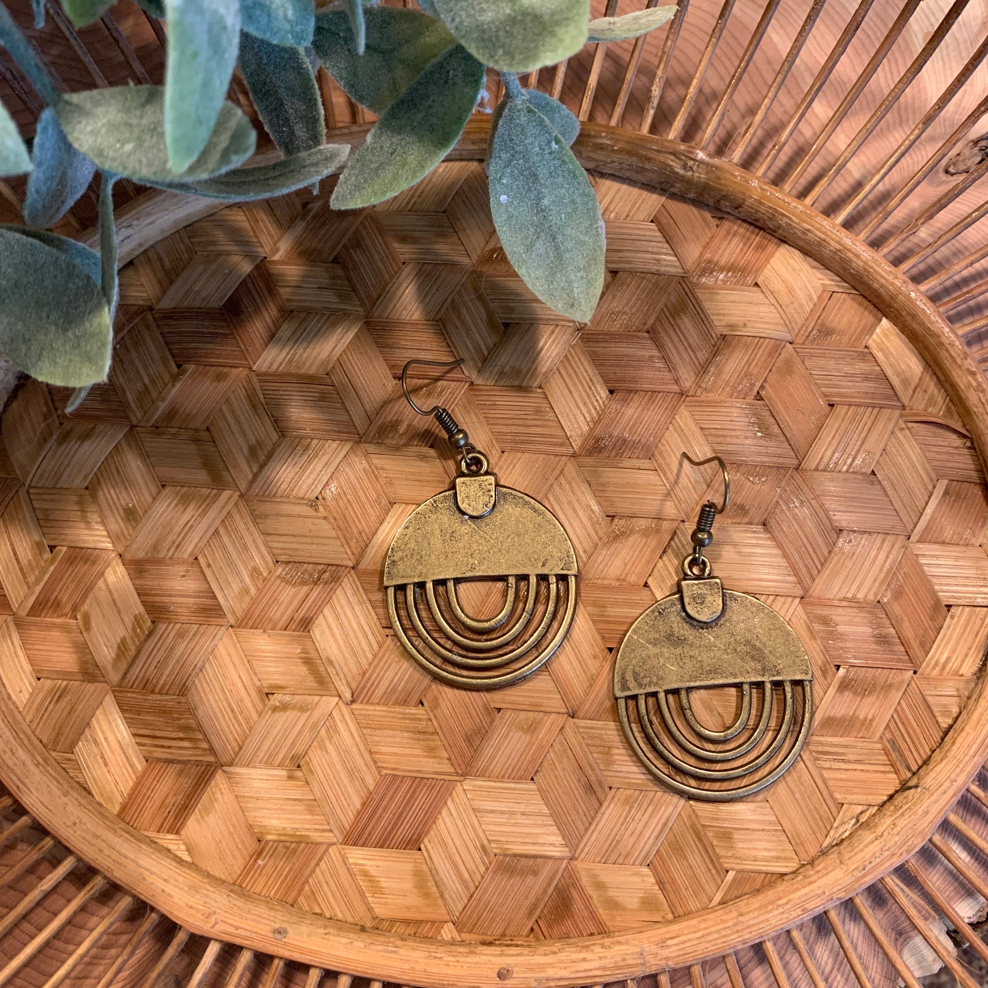 Antique Bohemian Geometric Rainbow Earrings - Bronze