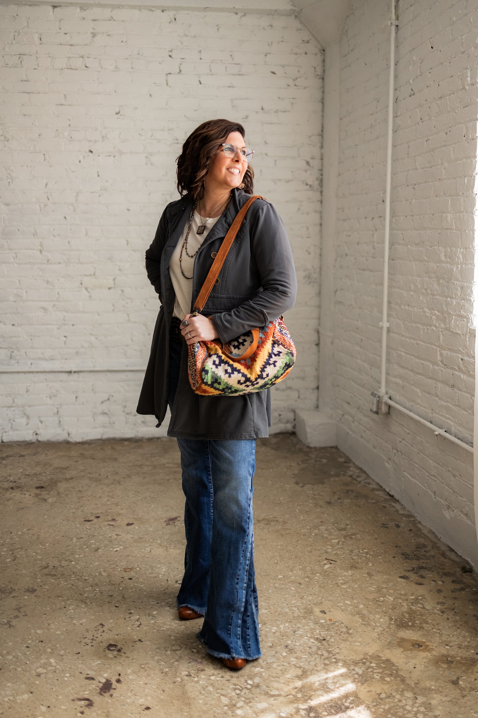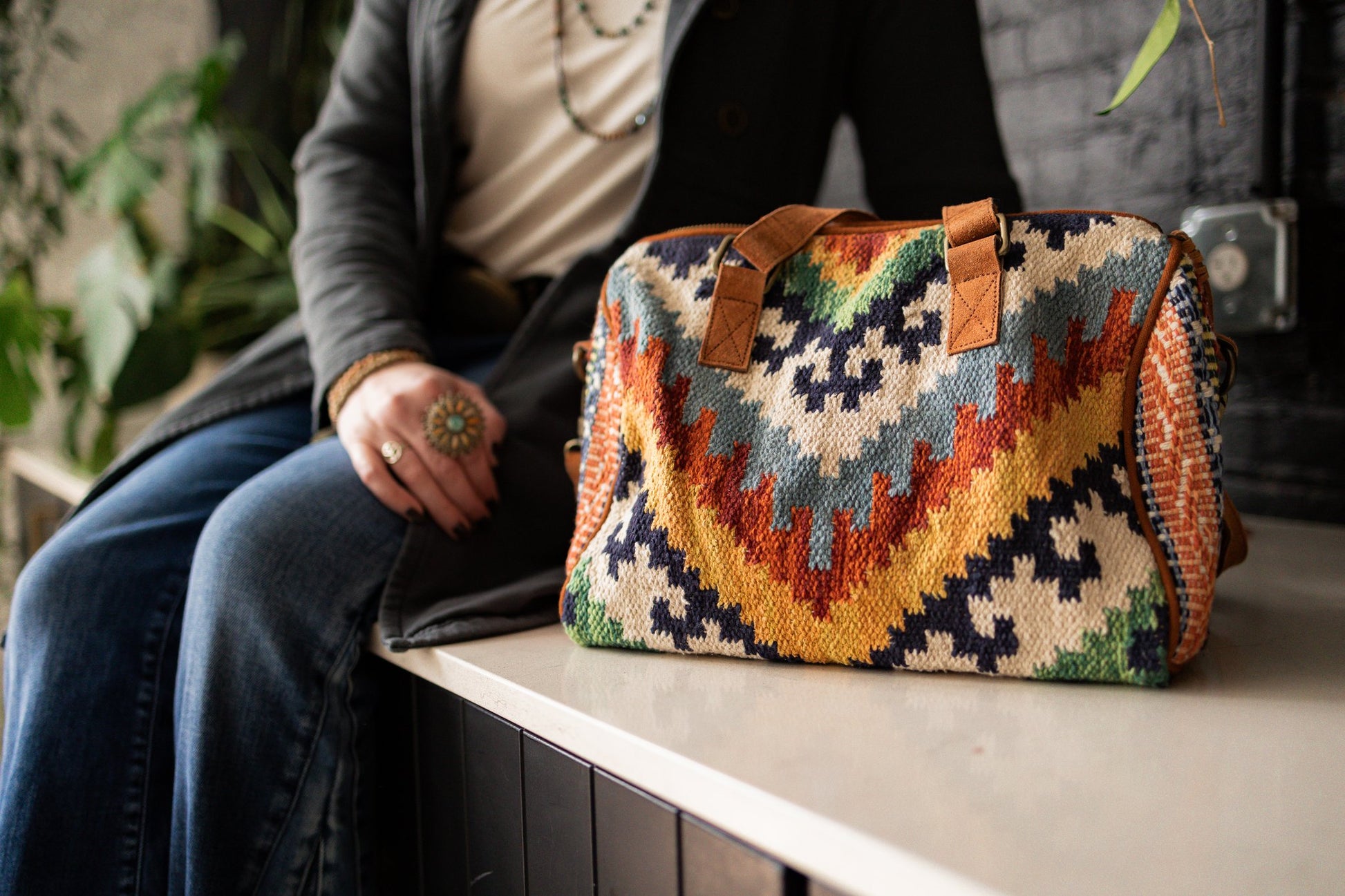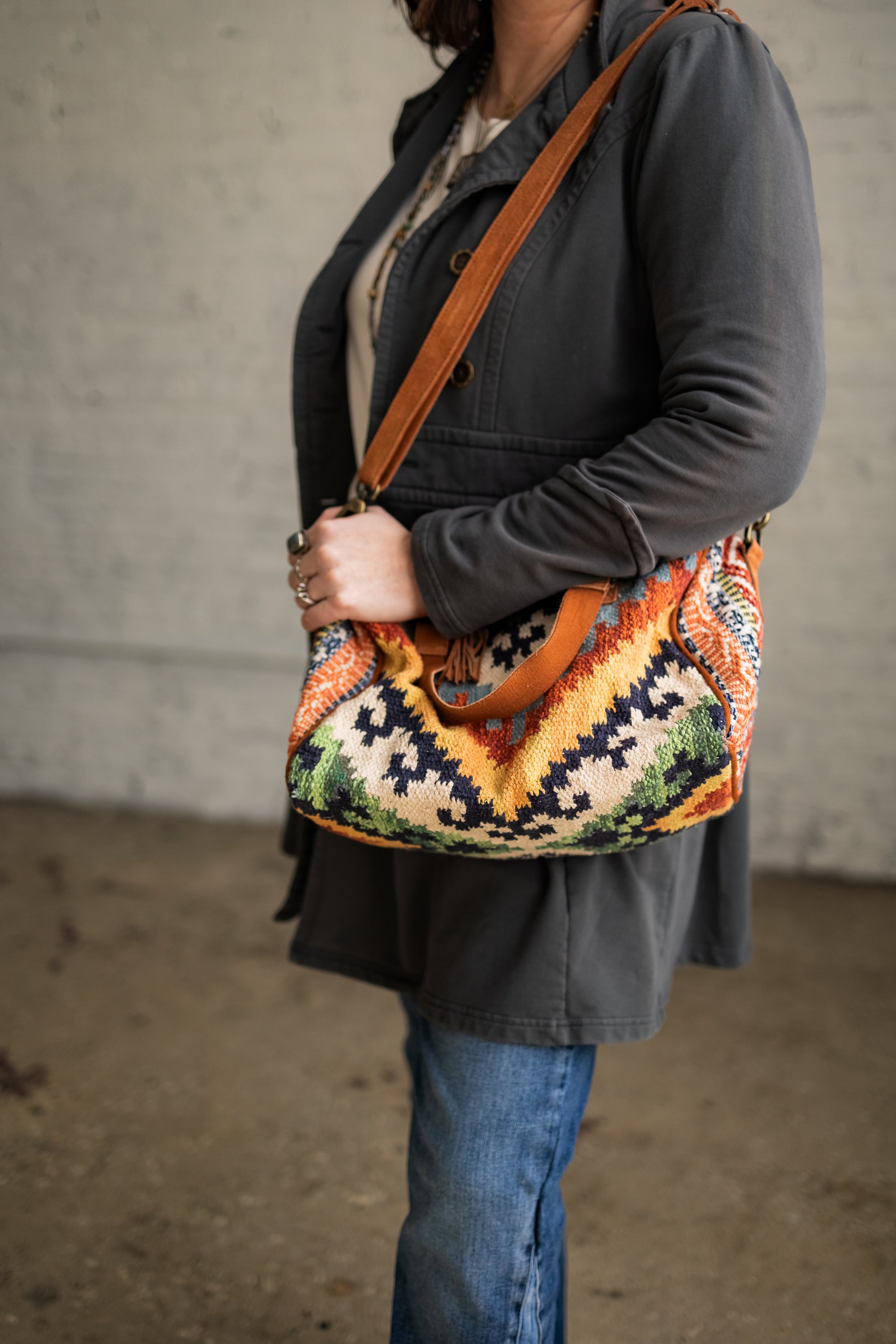 Aztec Woven Southwestern Style Bag with Suede Straps