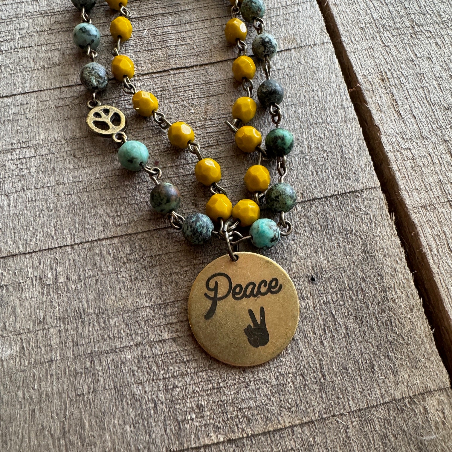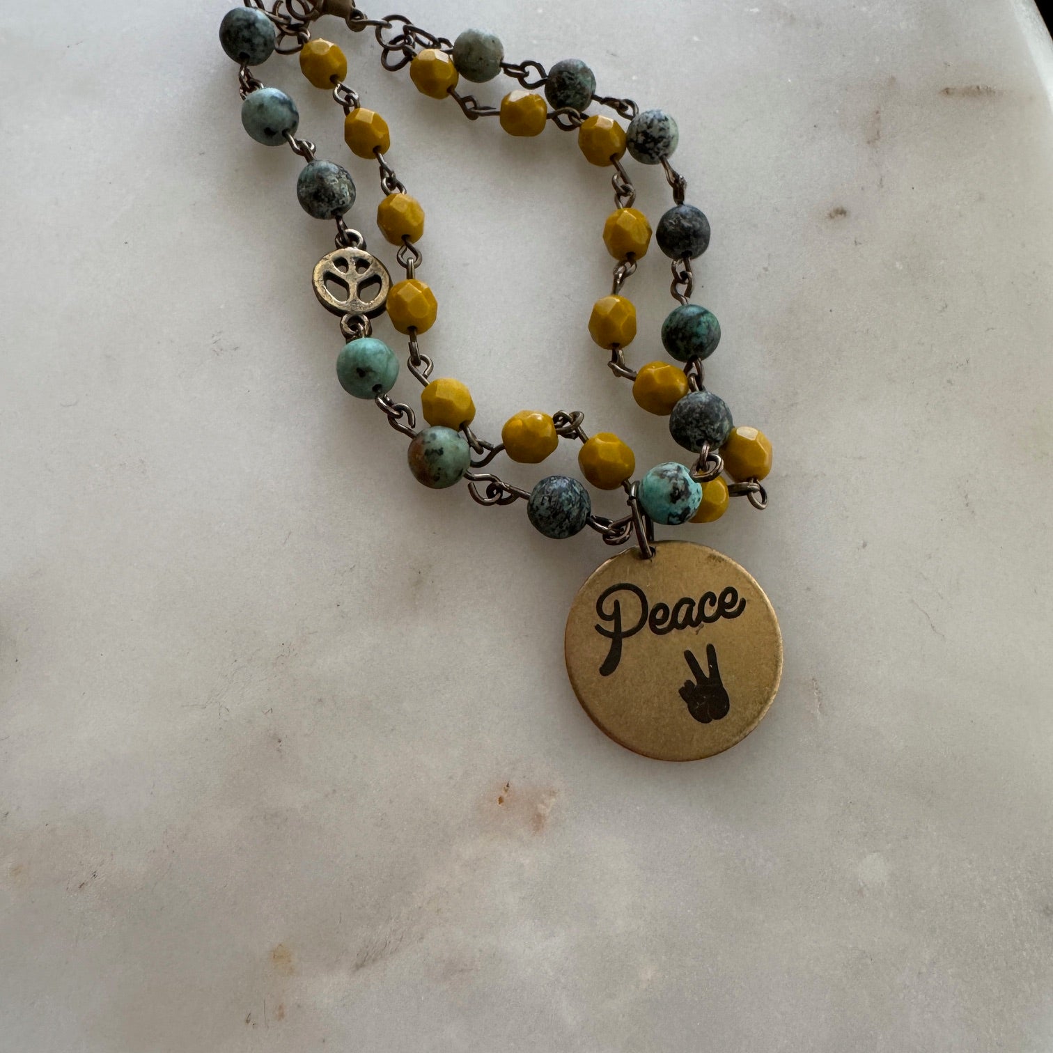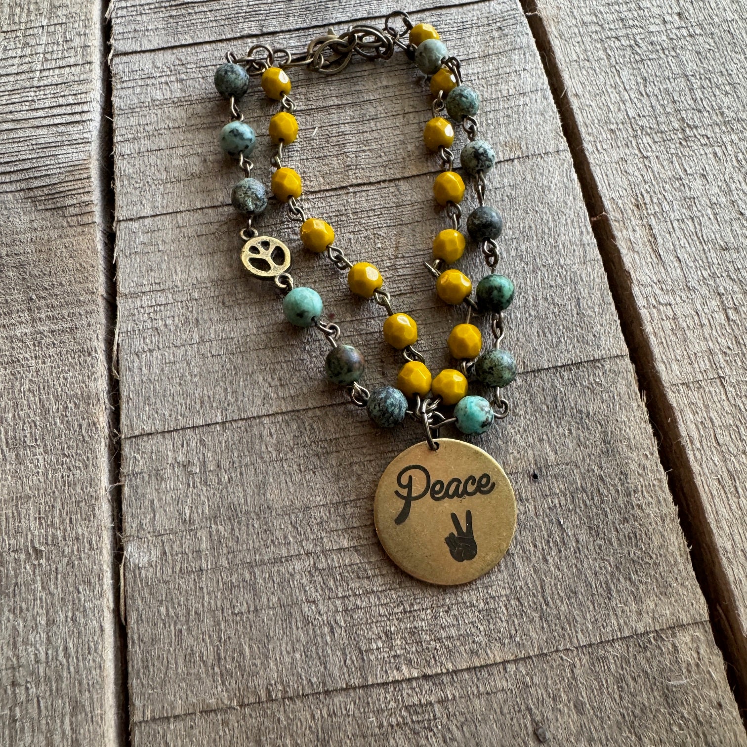 Boho Beaded Peace Hand Bracelet - Vintage Style Multi-Strand Bracelet with Charm. This is a part of our RSD Bracelet Collection. Due to the unique nature of the beads each bracelet is one of kind and may differ slightly from the photo listing.