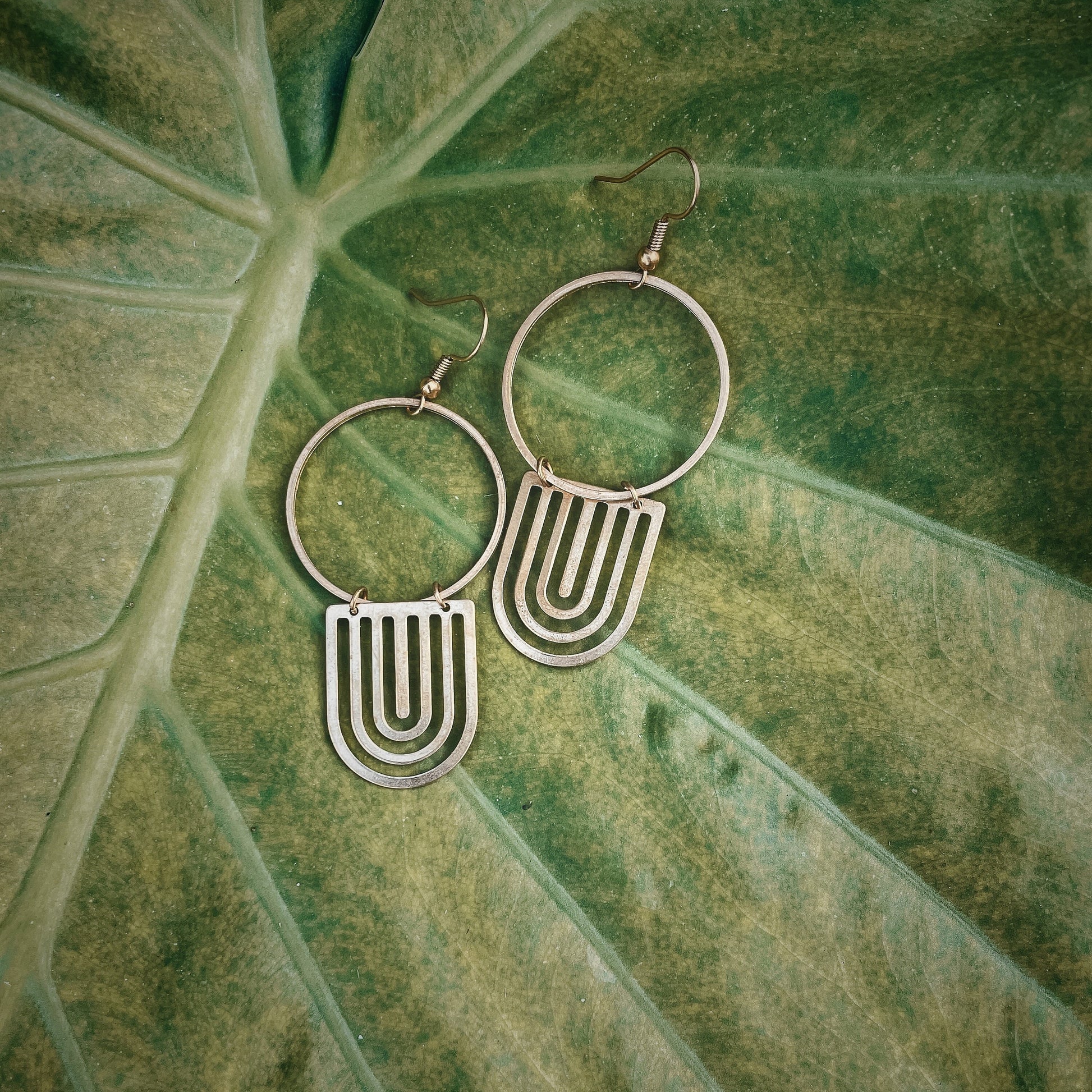 Boho Circle Brass with Geometric Rainbow Earrings - Metal Collection