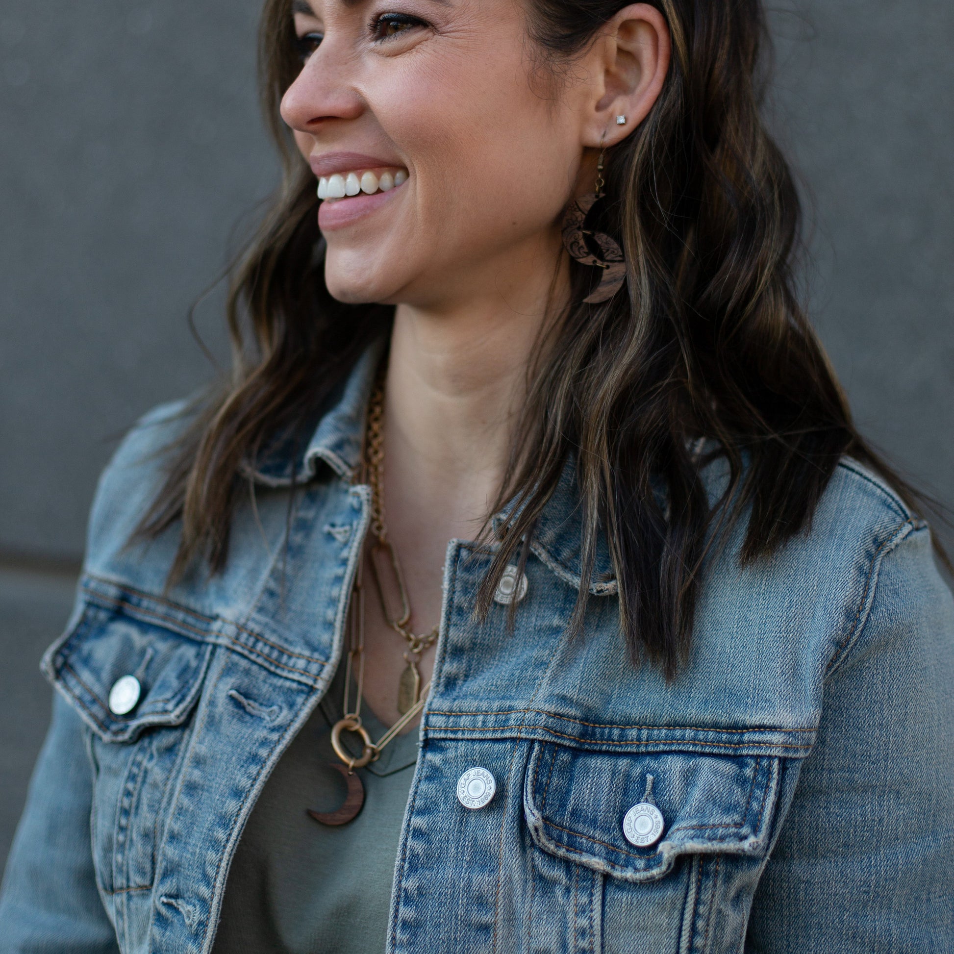 Double Moon Walnut Wood Boho Earrings, Natural, Lightweight - Celestial