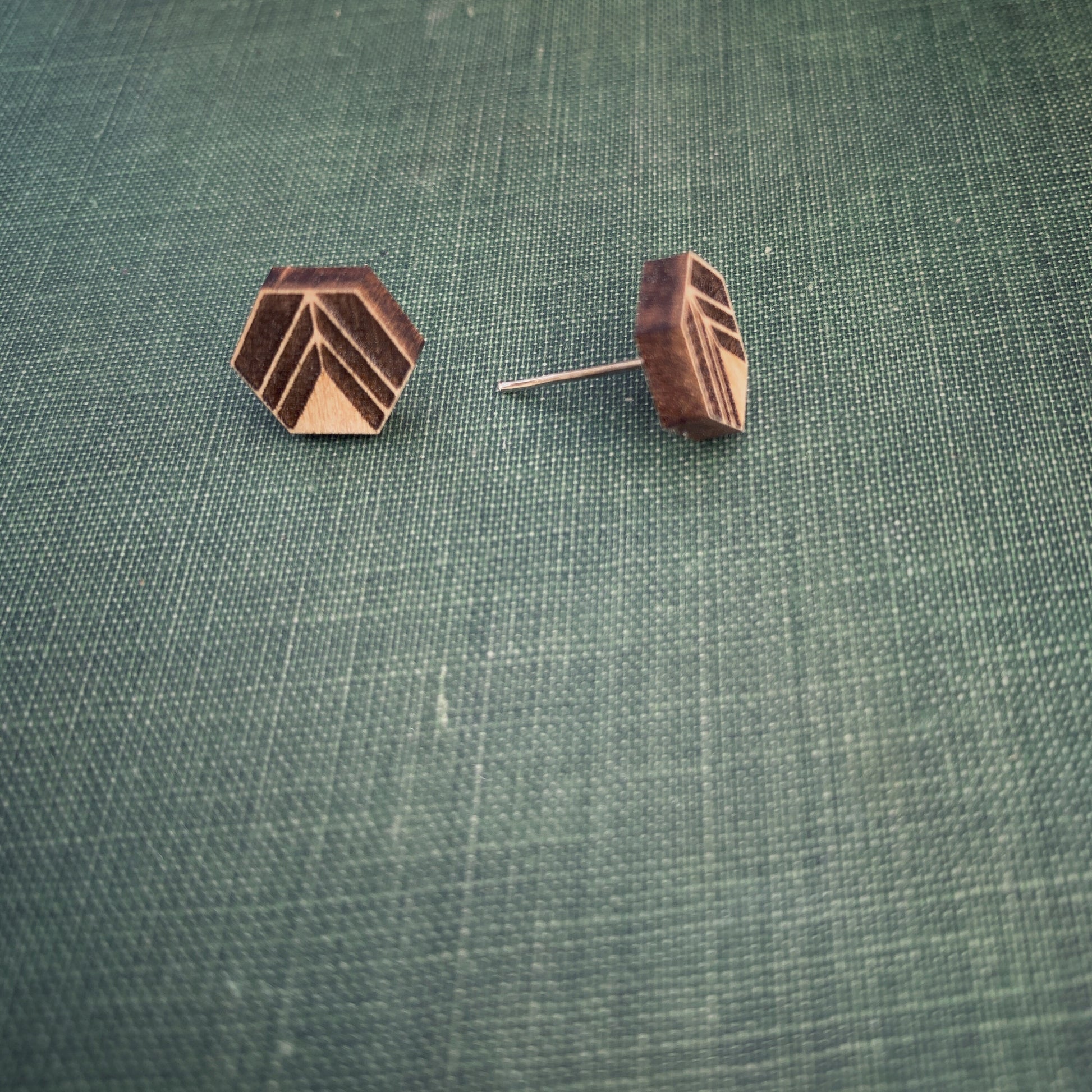 Geometric Birch Wood Stud Earrings, Boho, Minimalist