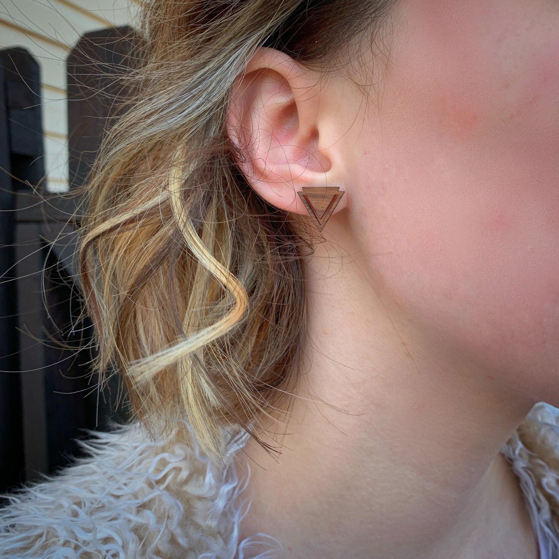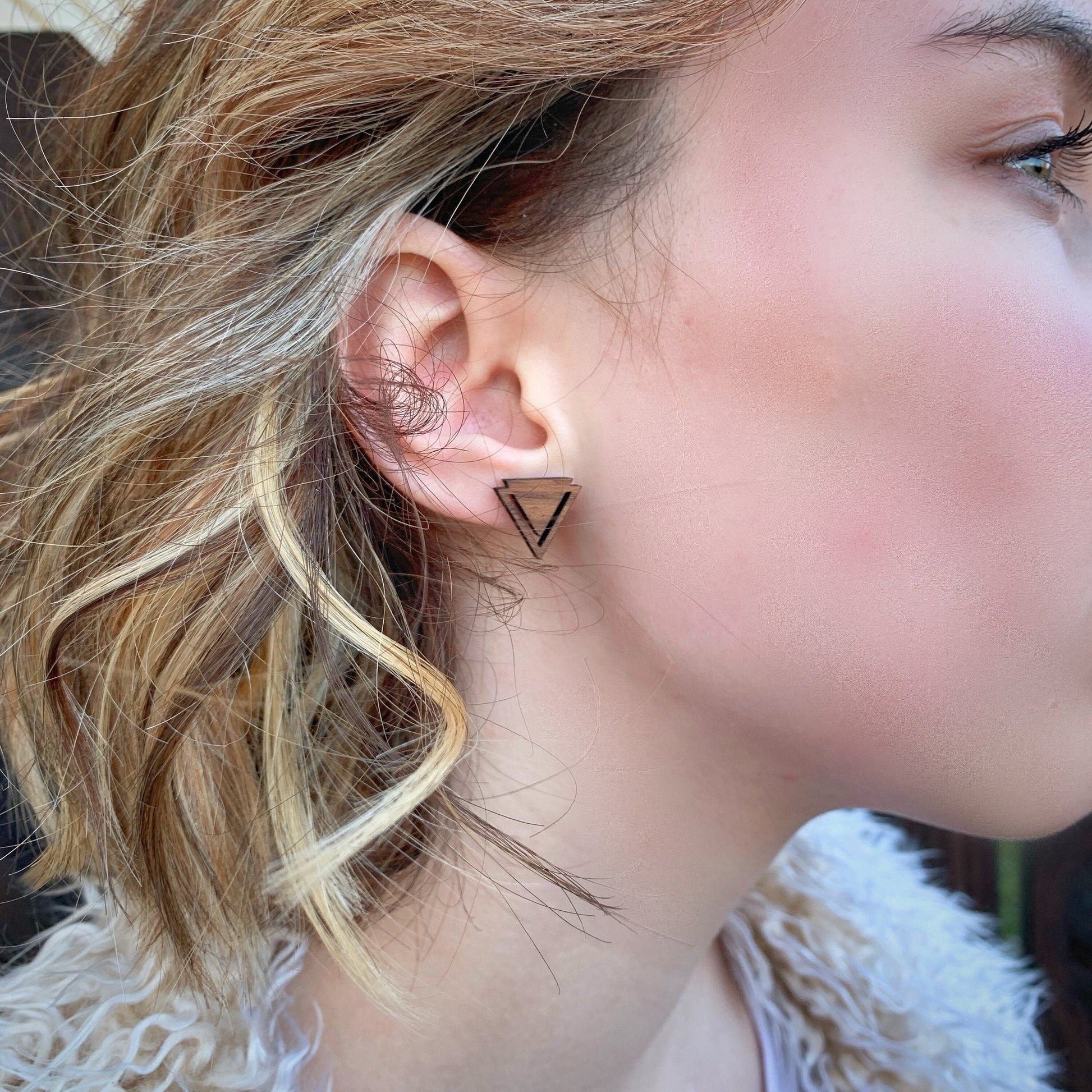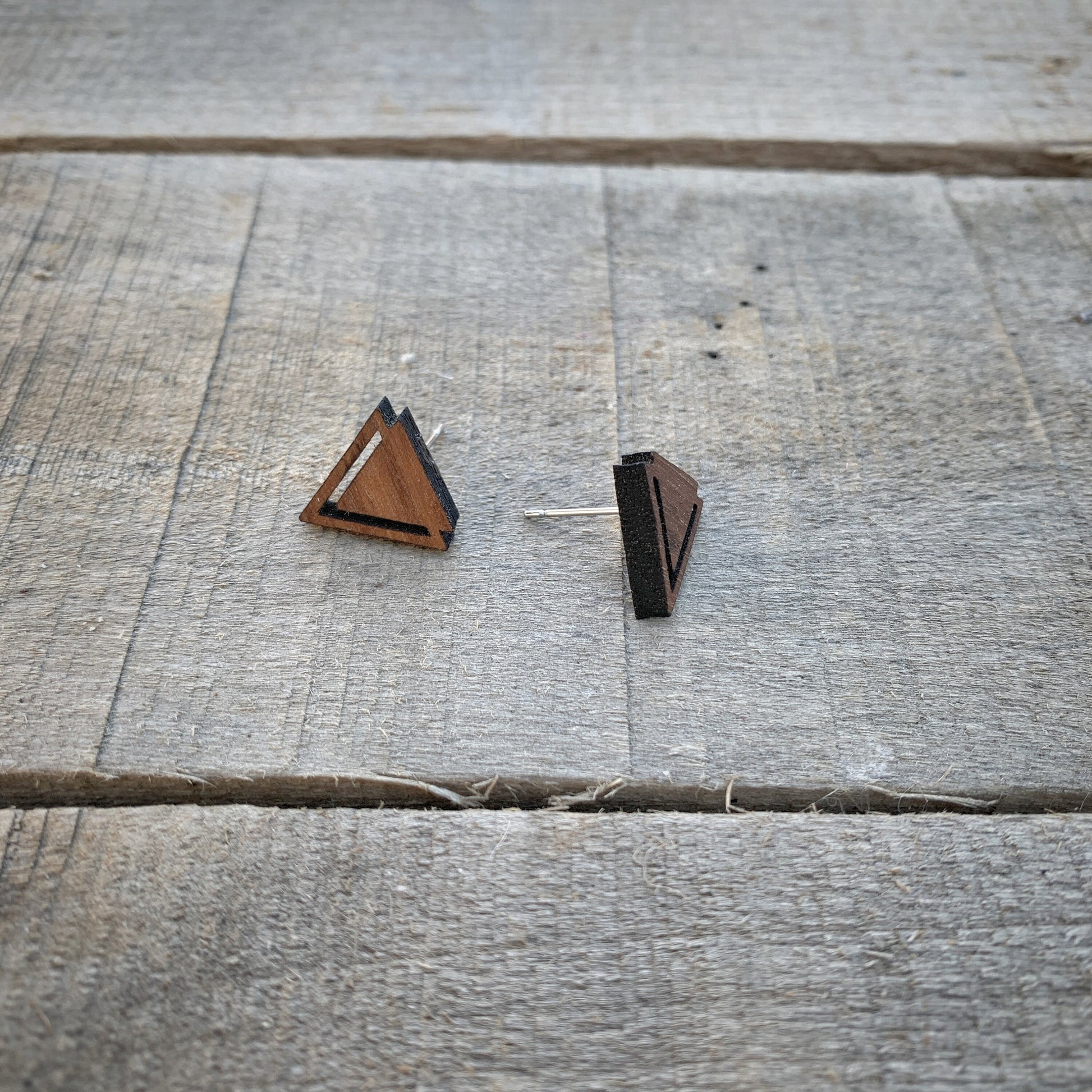 Geometric Triangle Walnut Wood Stud Earrings, Boho, Minimalist