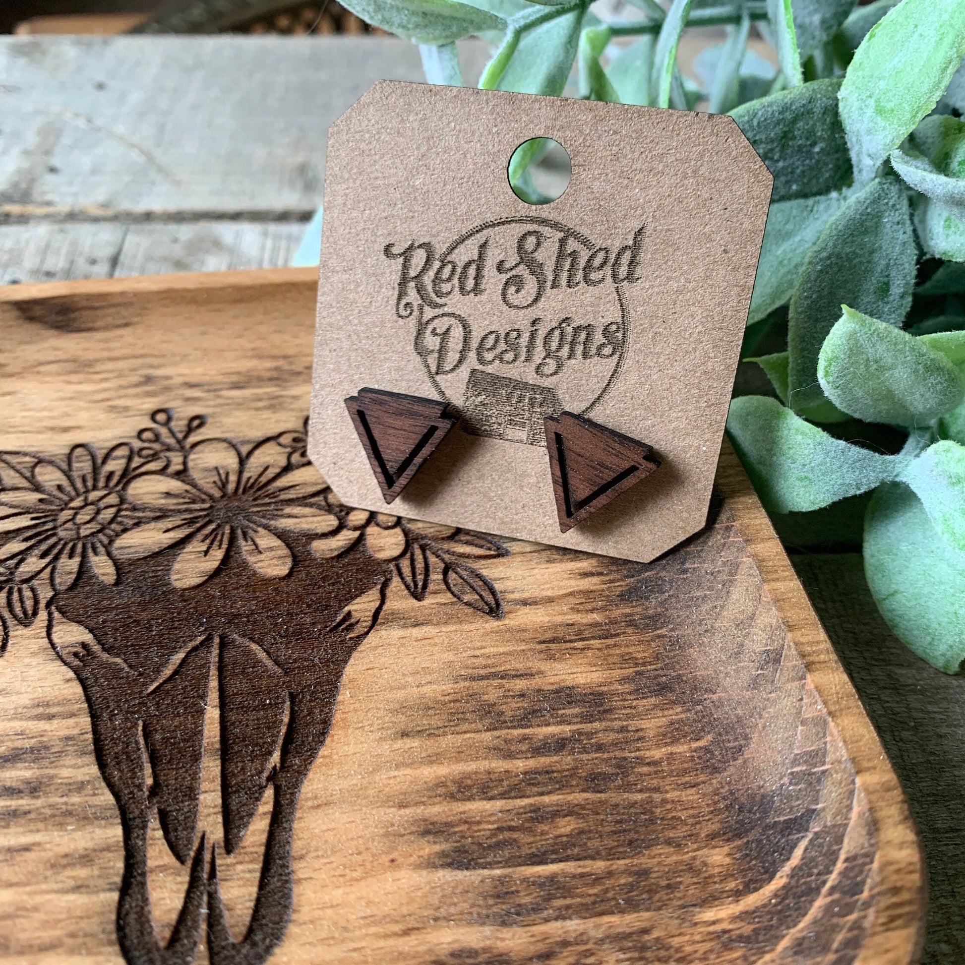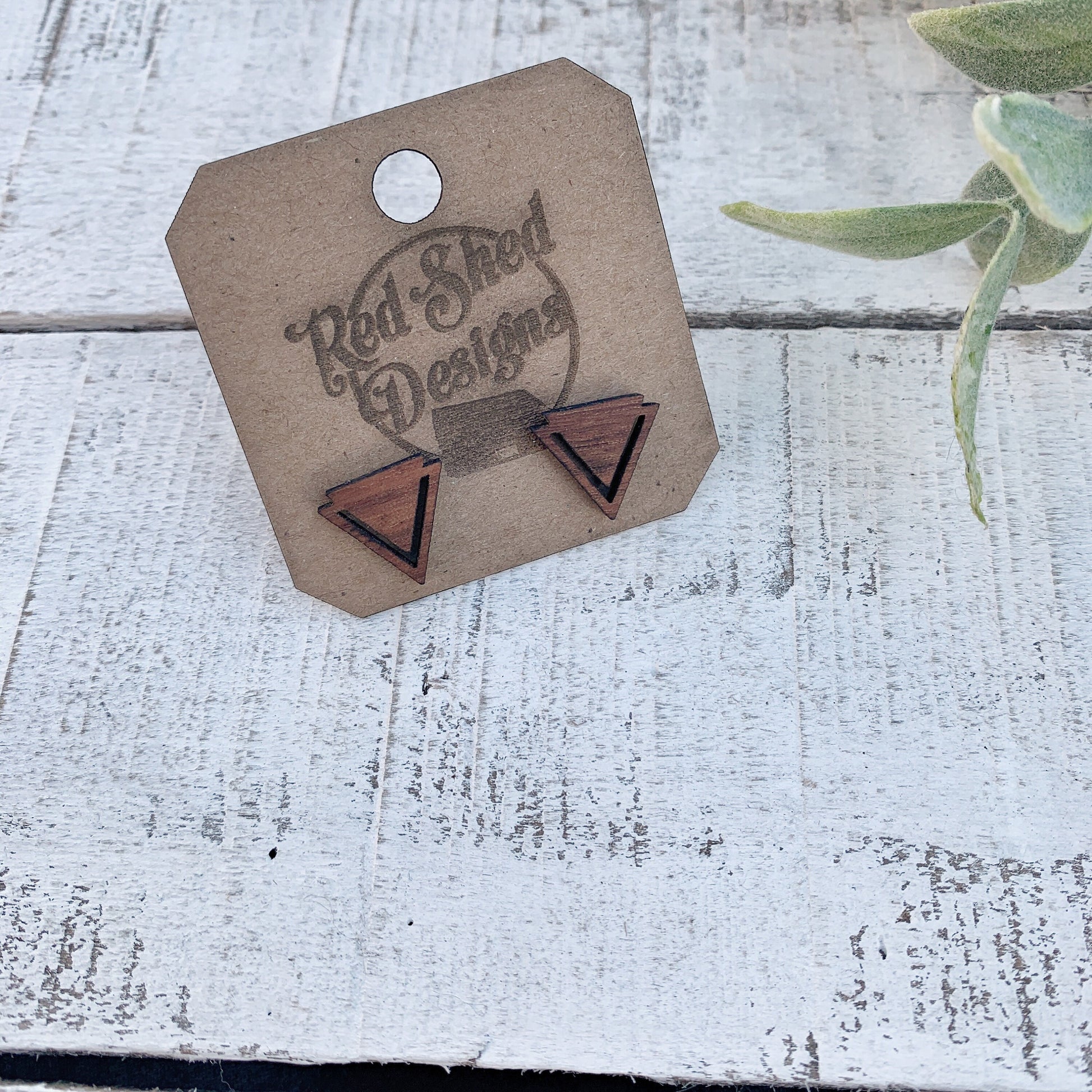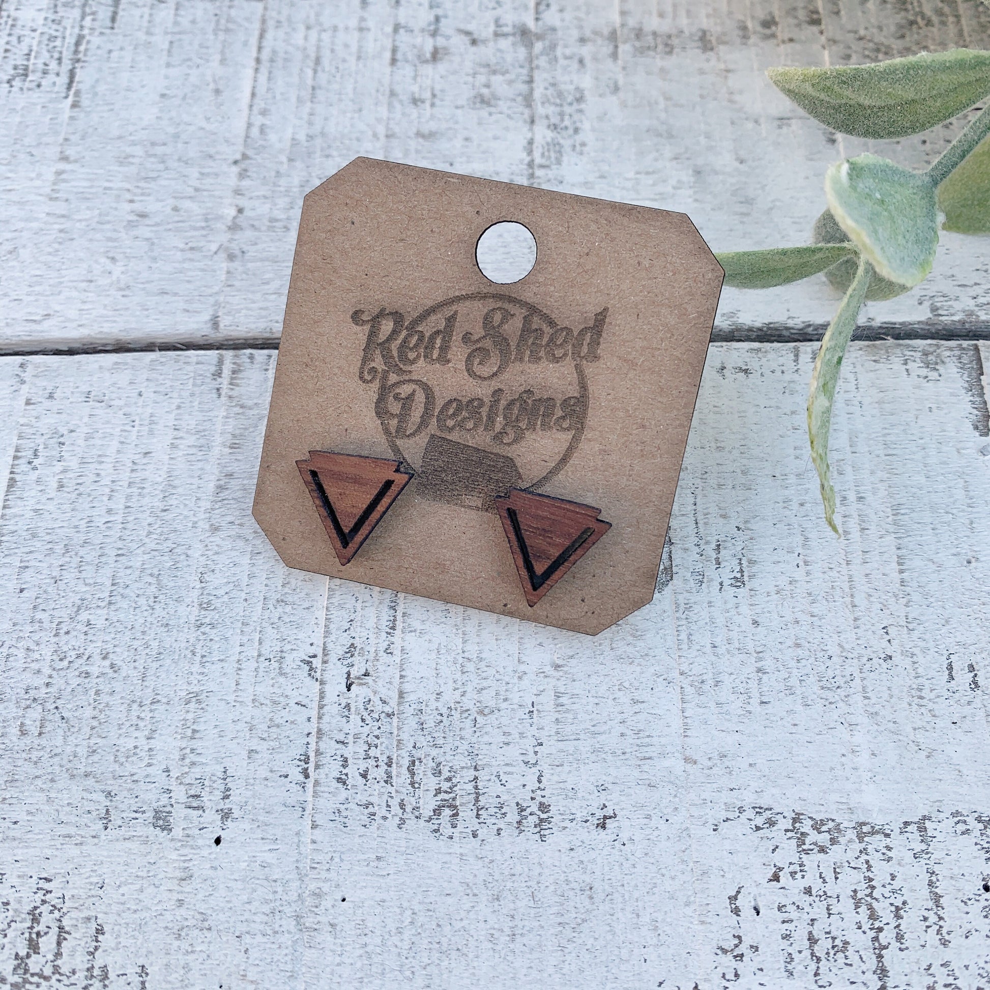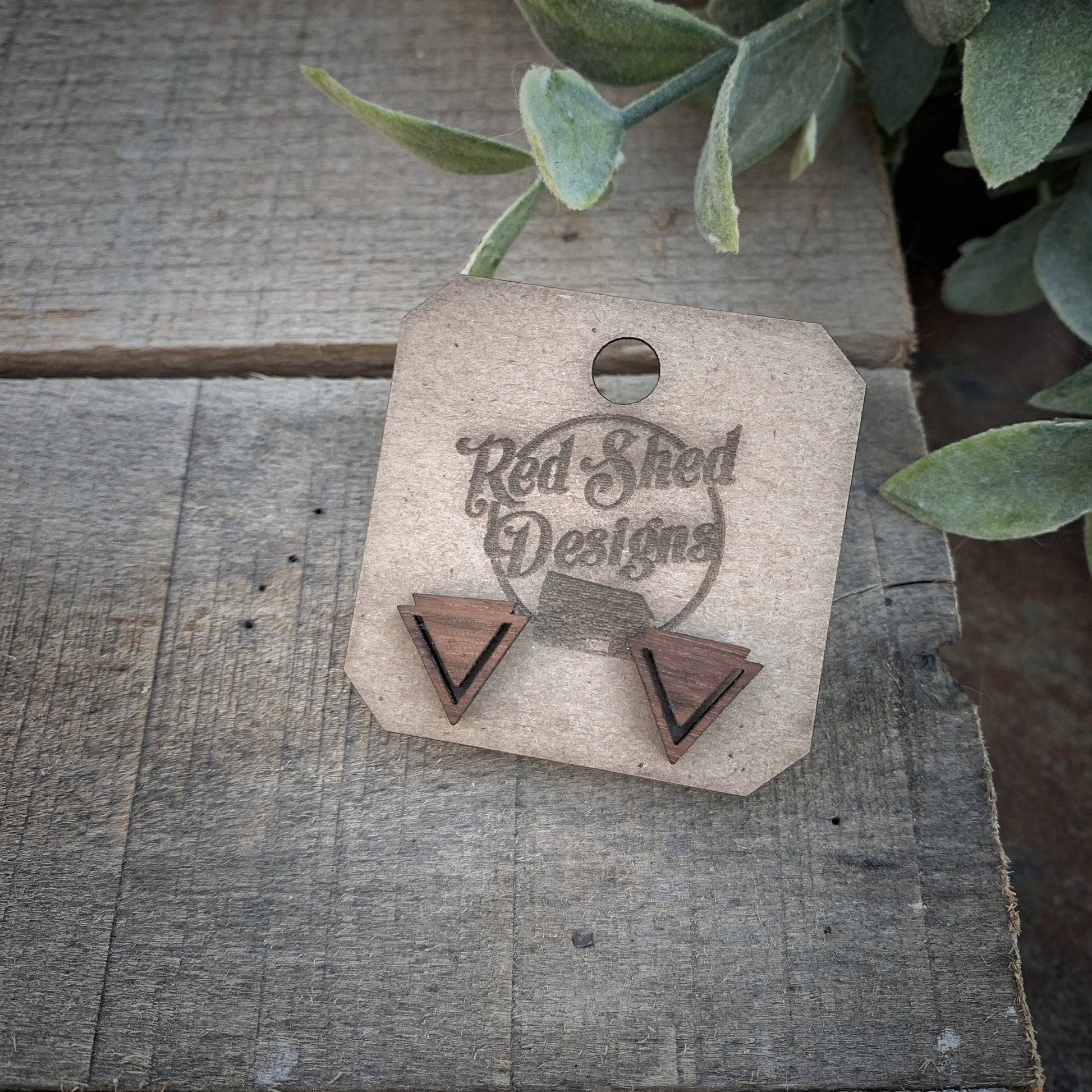 Geometric Triangle Walnut Wood Stud Earrings, Boho, Minimalist