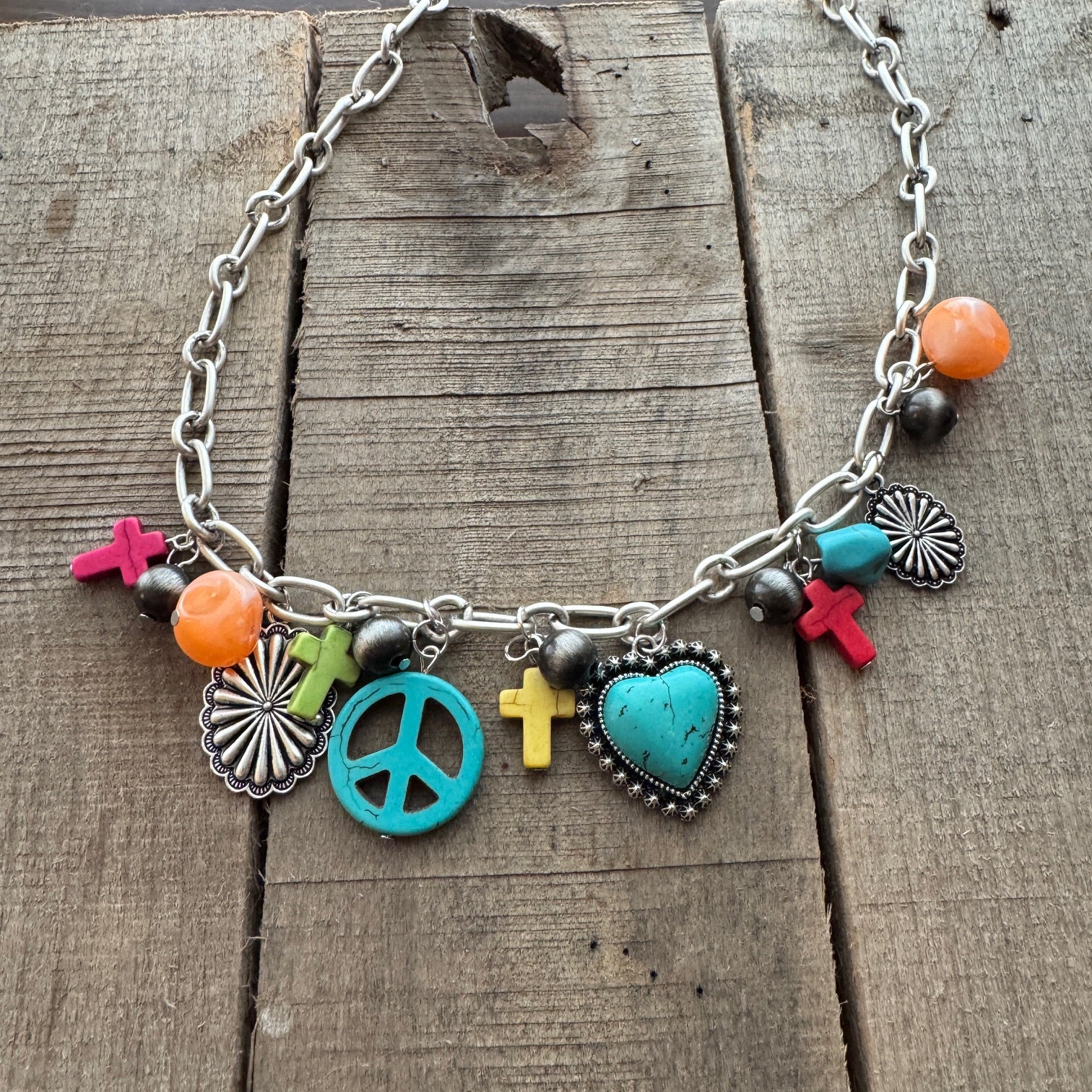 Handmade Western Boho Charm Necklace, Adjustable Length