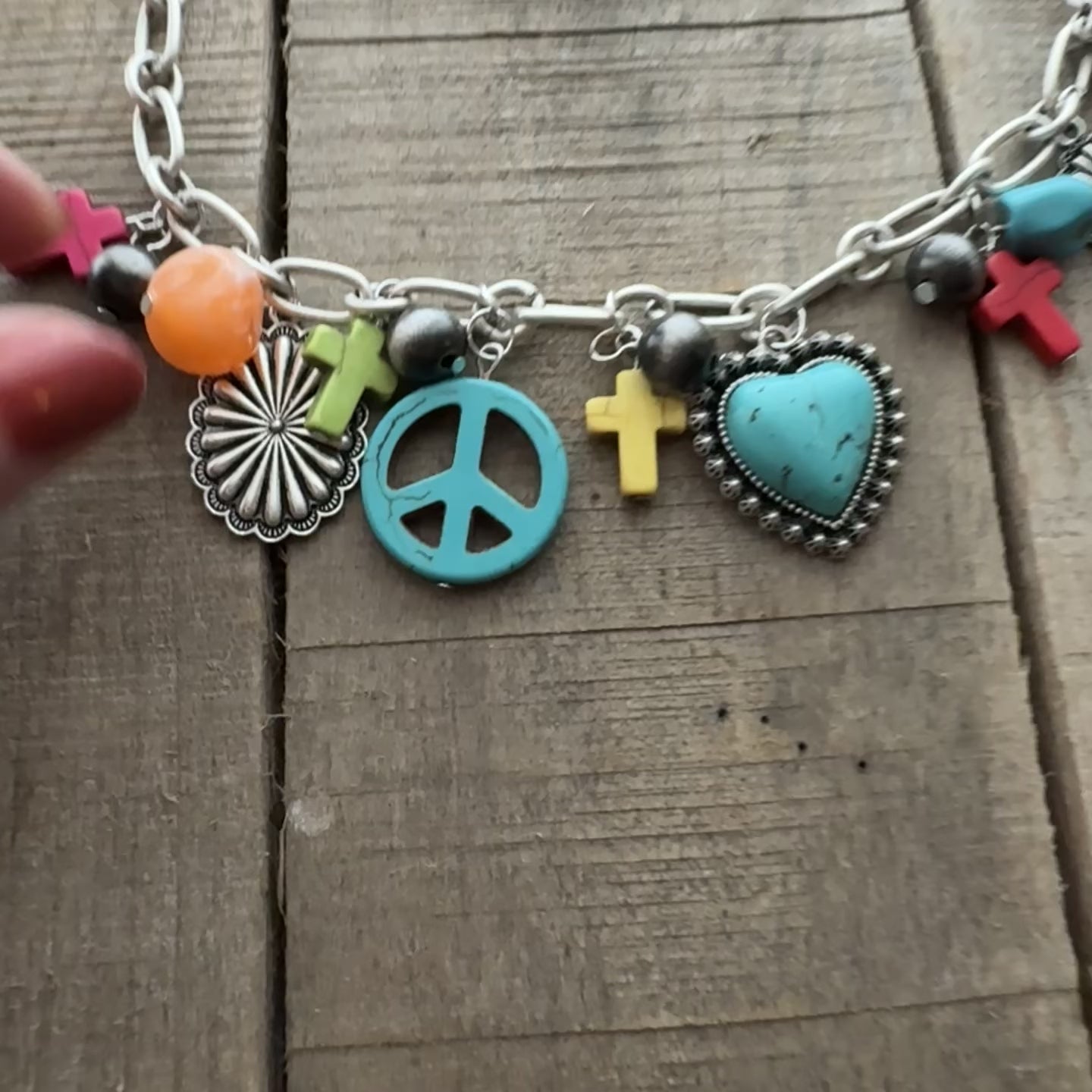 This Cute and Sassy Necklace will get lots of compliments, it Charms are on a chunky silver necklace.