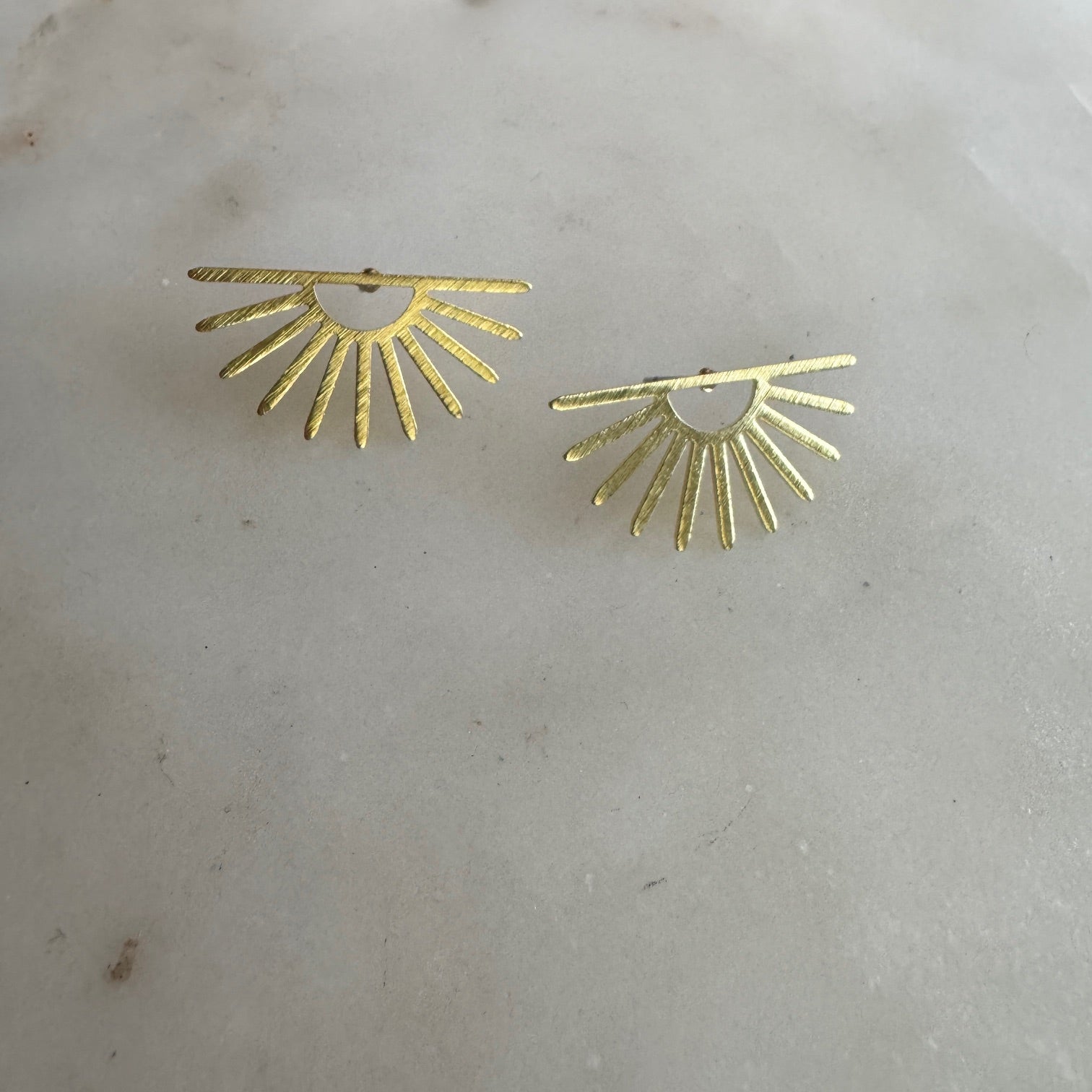 Retro Sunburst Brass Boho Stud Earrings - Sun Ray, Sun Set