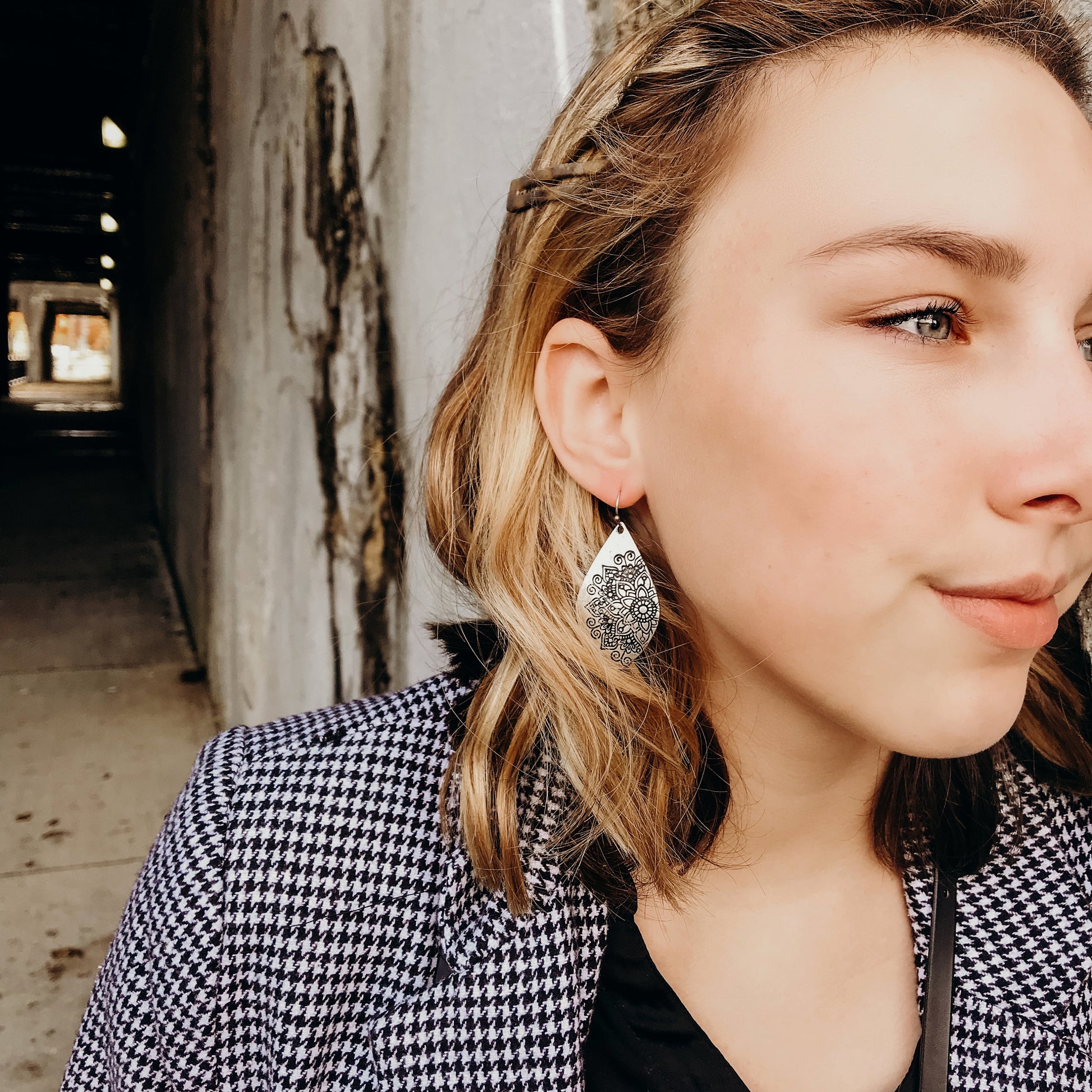 Silver Metal Bohemian Teardrop shape with Flower Stamped Imprint