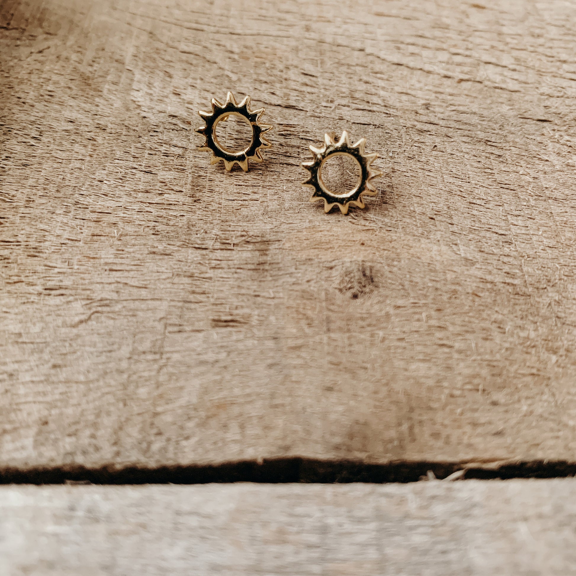 Tiny Brass Circle Sunshine Boho Stud Earrings, Sunburst
