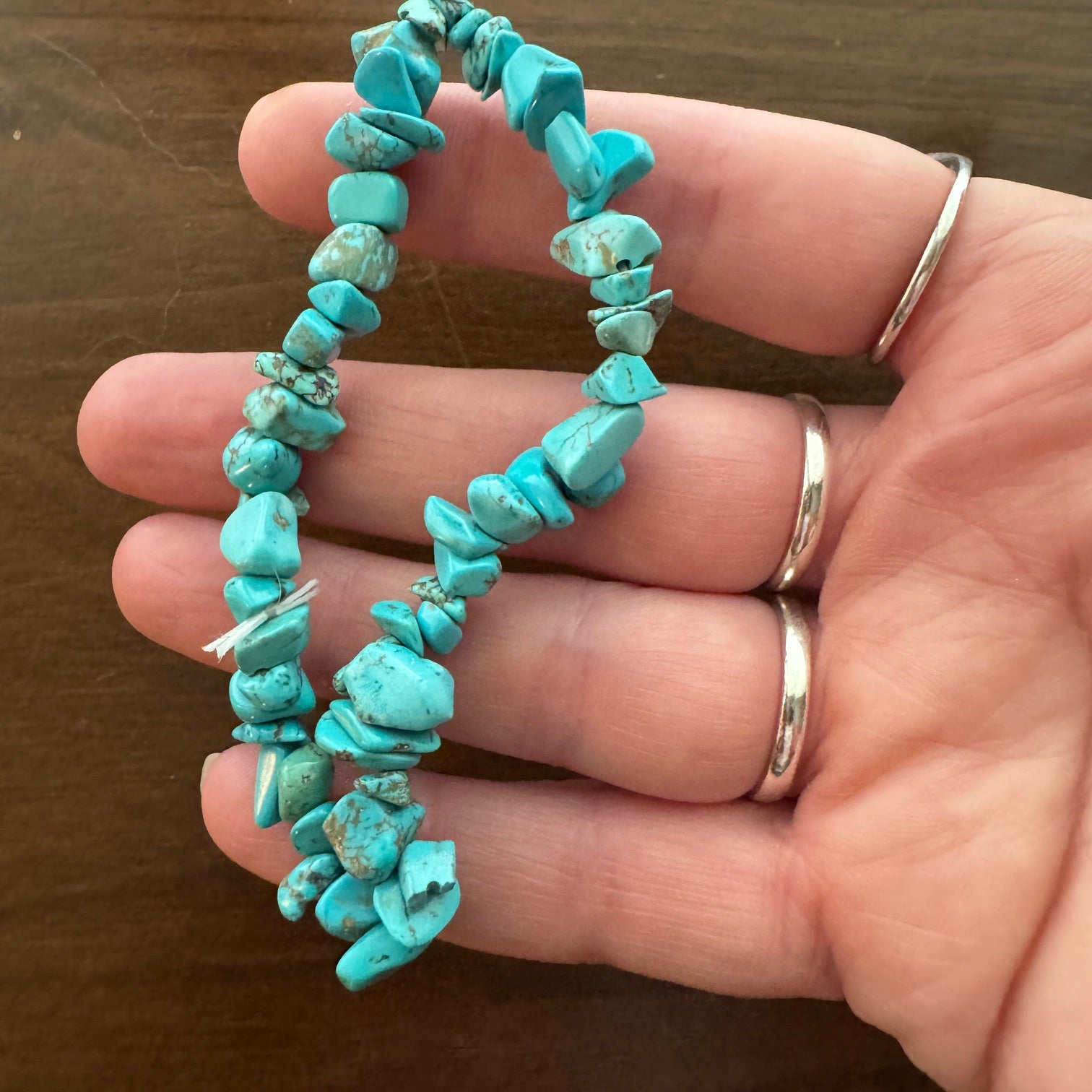 Handmade Turquoise Chip Stone Stretch Bracelet. Unique Bracelet to add to your Western Boho Fashion.