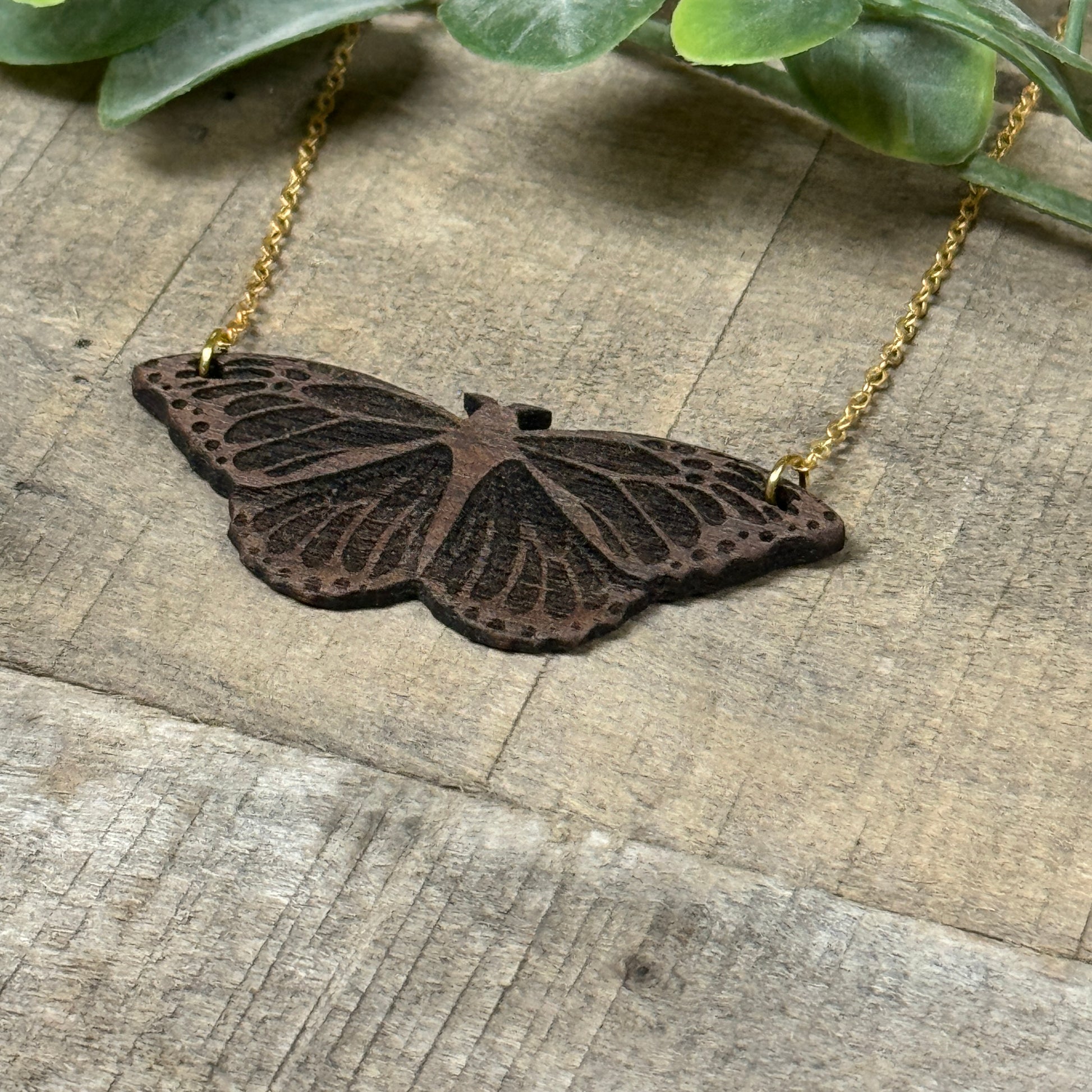 Walnut Wood Bohemian Butterfly Necklace, this is trendy and a truly unique necklace that will make a statement. Hippie Style and very natural and unique.