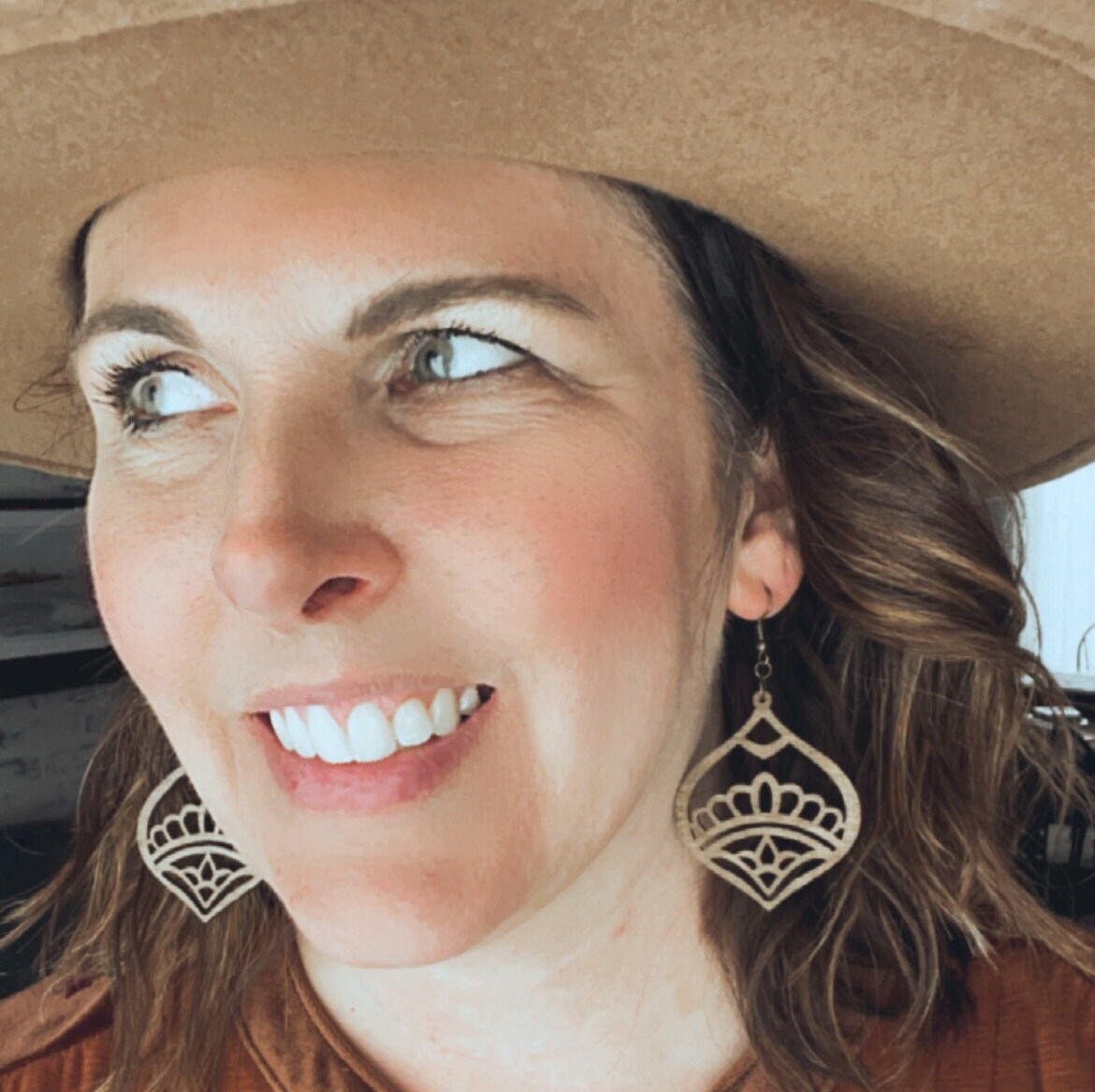 Wood Mandala Statement Boho Earrings - Lightweight - Gypsy Style